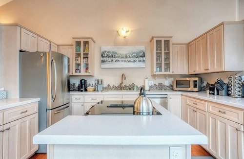 The home is complete with separate office space for two. Exercise equipment is available for adult use only and includes a weight set and bench and Peloton bike. A TV is set up to use while you work or workout. In this space you will find an additional fridge and freezer for extra food and beverages.