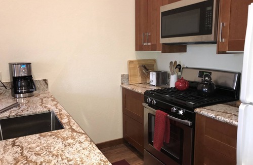Our kitchen is fully equipped including a new, self-cleaning gas range, all dishes, silverware, glassware and pots and pans for most types of cooking. There is an electric coffee maker, and there are also additional items like paper towels, napkins, coffee filters, and dish soap for both the sink and dishwasher.