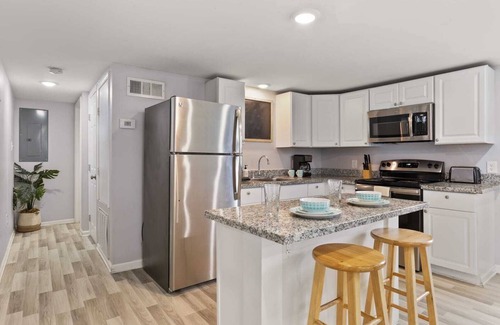 Newly remodeled ground level apartment offers travelers all the comforts for a night, week or month long stay. 1 bedroom with ensuite full bathroom, full kitchen and washer and dryer. The house is a tri-plex, and this unit has a completely separate entrance and full access to the back yard. Steps from the St. Charles streetcar the house is very centrally located. Minutes from the French Quarter and all our wonderful city has to offer. A perfect home-base for those that are working and traveling.