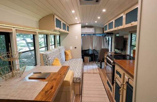 Skoolie Season - A Romantic Bus Escape on a Farm has 1 Bedroom , 1 Bathroom, and max occupancy of 2 people. The minimum rental for this property is 1 nights, but this can change depending on the season you plan on staying. Previous guests have given good rated it, and VRBO labeled it a top-rated House because of the excellent services rendered by the owner or manager of this House, and has consistently provided great experiences for their guests. Most families or guests that use it recommend it to their friends and some of them are repeat guests. House has a friendly neighborhood, and the Crellin has interesting places to visit. If you want to learn more about the House in Crellin, such as places to visit and things to do nearby, you can check below to learn more.