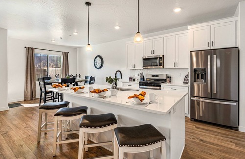 Located just minutes from Sand Hollow Reservoir, Quail Creek State Park, and the fun of JellyStone Water Park, Zion Narrows Landing is a vibrant 4 bedroom vacation home, that can sleep up to 15 guests, and the ultimate getaway for outdoorsy travelers and water lovers alike. This home is stocked with everything you need for fun in the sun—including paddle boards, boogie boards, pool noodles, life jackets, and folding chairs—ready to go for a day at the lake or a riverside adventure!