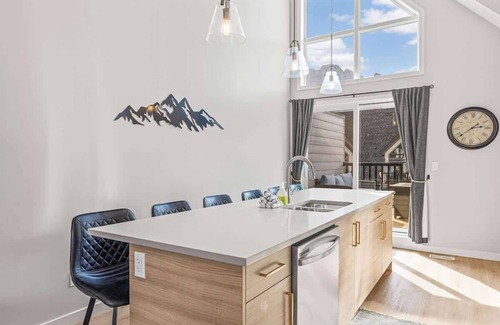 Welcome to Skyline Peaks, where luxury meets comfort for your Rocky Mountain Adventures. Brand-new stylish furnishings, premium quality linens, Towels and Toiletries. The fully-equipped Gourmet Kitchen and Natural Gas BBQ on the Adjacent Balcony are ready for your gatherings. High-speed internet and a desk ideal for staycation! 2 Bedroom & 2 bathrooms on the second floor. Each bedroom comes with a Smart TV. A King studio with ensuite on the main floor and attached single car garage. Winter bonus - You'll be all set for ski season with additional upgrades that other listings won't have. In the garage you'll find a boot and glove dryer after a fun day at the slopes!