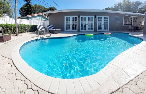 Welcome to Sky Villa Florida, your perfect home away from home that has it all. This modern updated home features 4 bedrooms, 2 & a half baths with large heated pool. 3 bedrooms & 2 full bath in the main house & 1 bedroom with half bath in the pool house.Prime location, minutes to the beach, Fort Lauderdale,25min to the airport & walking distance to enterprise, grocery stores & restaurants. Quiet & familly friendly neighborhood in between Boca Raton, Deerfield, Fort Lauderdale.