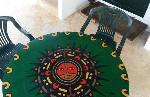 the Marabutto is an artistic realization with painted doors and tables, works of art on the walls. it is a lamia with a dome, with 2 beds under the large golden dome, bathroom with shower and hot water, a shower also outside with a mosaic wall, a patio with outdoor kitchen, minibar, coffee machine, bbq, large relaxation area with hammock and deckchairs among the olive trees. access is shared with the property owner and there is a dog in the outdoor areas. located on the spal montalbano-mare in the area of the Parco delle Dune Costiere it is 2 km from the sea and in a strategic position to visit Ostuni, Cisternino and the Itria valley. bike and cycle path nearby, riding stables, bars, restaurants and supermarkets, bank and post office. The Marabutto is an artistic realization with a lovely painted door and full of artworks at the walls. it is a "lamia" with a golden dome, a double bed, bathroom with shower hot water and a shower also outside with a mosaic wall. There is a patio with kitchen, minibar, coffe machine, bbq, and large relax area with hammock and chairs among the olive trees. The entrance is shared with the owner of the near villa and there is a dog in the garden. situated on the provincial road 10 montalbano-mare in the Parco coastal dunes zone is at 2 km. From the beaches and in a strategic position to visit Ostuni, Cisternino and the Valle d'Itria. Bycicle available to explore the area full of cycloturistic routes. In proximity horse riding, supermarkets, restaurants bank and post office.