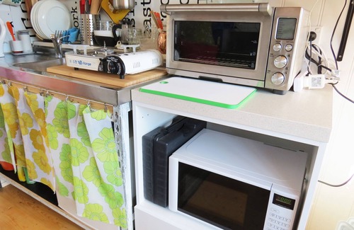 Although it is small at 16 sq m inside ( incl the mezzanine ) plus 9 sq m deck, it is cute and charming and features many practical design details to make your stay comfortable.