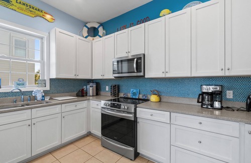 Fully Equipped Kitchen: Cooking is a breeze with a fully stocked kitchen, featuring modern appliances and everything you need to prepare meals with ease. There’s also a Blackstone griddle for grilling up your favorite beach meals.