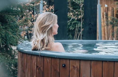 Tiny Lodge TL143 features a wood-fired hottub and enclosed garden