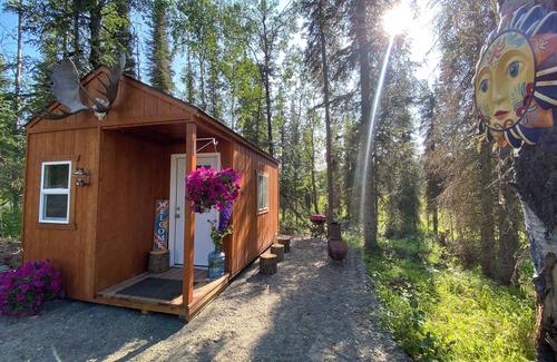 The Moose Cabin is located in the woods next to a private lake. Just 2 minutes from the Kasilof River and 12 minutes from the Kenai River, this dry-cabin is perfect for fishermen or families looking to get away for a relaxing camping experience. There are two bunk beds, a table, fire pit outside, picnic table, and charcoal bbq. There is a bathroom on site with flushing toilet and running water. No shower. Bring your own sleeping bags or we can provide some if needed for extra fee. Perfect for local dipnetters!