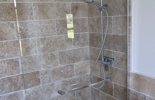 The bedroom boasts a 180x200 bed with a new mattress, duvet, and linens, ensuring a comfortable and restful night's sleep. Book now for an unforgettable romantic getaway in the heart of the French countryside!