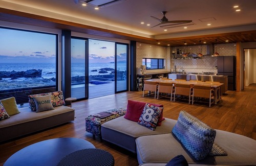 A small luxury villa that integrates with the sea that spreads out in front of you There are 3 bedrooms 2 Westernstyle rooms 1 Japanesestyle room and a natural modern living and dining room with an open feeling The interior is made of natural wood that makes you feel relaxed and the living room is full of attention to detail such as large windows that allow you to enjoy the best view of the sea and the setting sun 30 seconds to the sea As soon as you get off the stairs on the terrace you can go straight to the sea where you can enjoy activities such as marine sports and diving until the sun goes down BBQ while looking at the sea BBQ facilities are available by the pool There is an Lshaped cushion sofa so you can enjoy BBQ with a large number of people while looking at the sea Enjoy the best in a private sauna Sauna facilities are also available You can relax with your family lover or close friends You can also go directly to the infinity pool from the sauna room / Layout