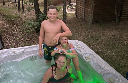 If your looking for solitude and majestic natural beauty, these one room cabins are the place ! This property adjoins Hugo lake in south east Oklahoma. Watch the deer and wildlife right from your porch, soak in the hot tub and gaze at the stars, roast marshmallows and warm yourself by the fire ring. You won’t find a more natural and relaxing atmosphere. These are one room cabins with no bathrooms in them the shower house and bathroom is only about 30 steps away.