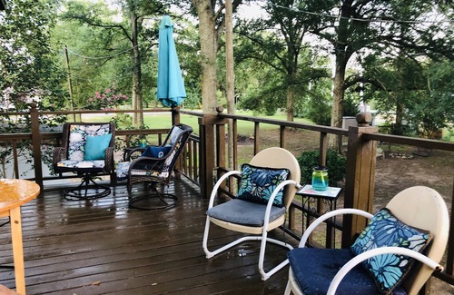 Small country Treehouse. Great for traveling Nurses or Contractors. Perfect for out of town guest! Upstairs has bedroom with queen bed, designated office area, bathroom with shower, small kitchen with gas stove and full size refrigerator. Full size couch, WiFi, Smart TV, and Keurig. Treehouse has another bedroom with a double bed. Also includes living area with Twin bed, Smart TV, WiFi, refrigerator, microwave, Keurig, outdoor sitting area, gas grill. Top and bottom share a bathroom located in upper portion of Treehouse. Maximum guest 4.