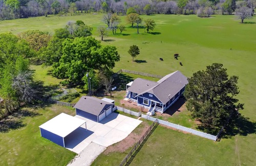 This 1927 home was relocated from the Houston Heights to our scenic 20 acre farm near downtown Montgomery Texas. SLEEPS 10 plus a blow up queen mattress for two more. The farmhouse has 3 shaded outdoor areas - under the carport, a shaded side yard and a back yard off the Primary bedroom. Celebratory Events must be concluded by 11PM to keep peace with our neighbors. We have cows to feed carrots and apples in the fields. Beautiful area down by the creek to explore. Minutes from Sam Houston National Forrest @ Lone Star Hiking Trailhead #4 Stubblefield Lake/Recreation area, 208 OHV Trailhead. Backyard firepit for sunsets. Downtown Montgomery has wonderful events year round. Close to Texas Renaissance Festival. TOO many wineries to mention but Bernhardt is a favorite.