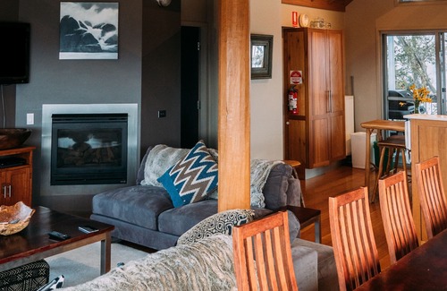 The main living area offers high raked ceilings and large windows that flood the space with light. The lounge also has a gas fire - who wants to be at the snow without one!