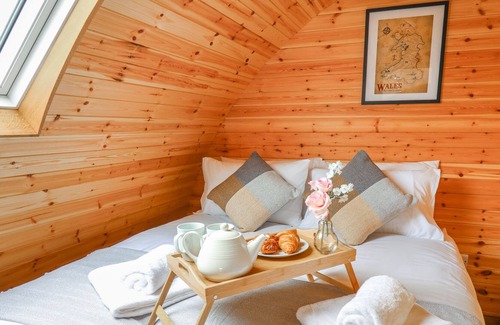 This ground-floor lodge rests in St Harmon near Rhayader, Wales and can sleep four people in two bedrooms.