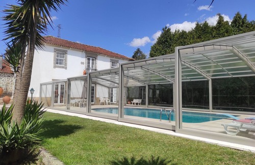 This property is in the center of a small city, and is a Villa with 12.500 m2.; Some buildings in the property are dated from 1740. The Villa used to be a farm with 100.000 m2. In the end of the past century, the property size was reduced, allowing us to take a better care of the beautiful gardens, the swimming pool and tennis court areas, and the decoration. A car trip from the villa to the downtown area of Porto takes 12 minutes (17 km), and the Atlantic coast and sandy beaches are 20 minutes (22 km) from the villa. The villa is totally modern and renovated and we take a lot of pride in the decoration and materials made available to our guests. The five rooms are devided in two separated houses. The 'Swimming Pool House', has two en-suite rooms on the 1st. floor, with views of the swimming pool area and it's garden, and the 'Cottage House', just five meters across, with three rooms, two on the 1st. floor and one on the ground floor. This house has one full bathroom on the 1st. floor and another, very spacious and modern full bathroom on the ground floor. We consider our rental ideal for groups of more than one family, but it is also very interesting for a single couple that want's a beatiful experience of staying in a large property.