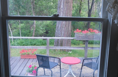 WHAT CREEKSIDE HAS: A friendly creek that runs year-round and also runs right past your back deck. It has deer and foxes and turkeys and squirrels and wonderful songbirds and, yes, there’s even a chance you’ll see a California black bear but, in fact, it isn’t likely. In the 15+ years I’ve been hosting, only 2 guests have seen a bear. I want you to know it’s possible but unlikely. FYI: A California black bear’s behavioral traits are NOTHING like a grizzly bears.