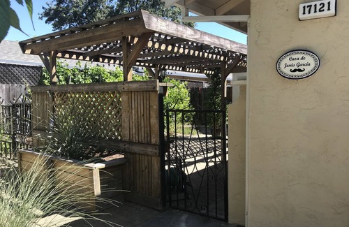 Charming house in Sonoma with Pool, SPA, BBQ, beautiful outdoor area for hanging out by the pool. Home is 3 miles from downtown Sonoma and less than a mile from the wineries. Plenty of space for up to 6 guests - Master bedroom has king bed and private bathroom, guest room has queen bed and hallway guest bathroom. There is also a detached private bonus room with a full bed. House is located in the heart of Sonoma, close to wineries, downtown and numerous restaurants.