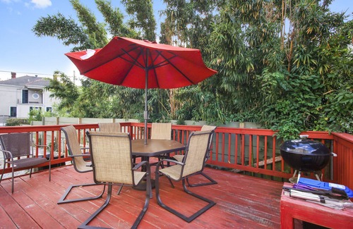 All linens and towels are included in this unit, as well as cookware and dishes/utensils. This apartment is truly ready to be ENJOYED as home base for your Festival adventure! Additional features include: free on-site high efficiency washer/dryer, 12 foot ceilings, central air and heat and large newly built patio w/ Grill. Public Transportation is conveniently accessible just one block from the house. The Street Car is just one half mile away. Drop your suitcase and walk or take a bus (bus stop one half blocks away) or taxi minutes to the French Quarter, Bourbon St. This elegant rental is situated in the extremely walk-able Bayou St. John/City Park/Fairgrounds neighborhood. Located just one block from regal tree-lined Esplanade Ave, with many restaurants grocery stores. Continue walking on Esplanade (another 5 minutes) and enjoy the numerous attractions of City Park . Wile away an afternoon in a gondola or peruse the park's waterway in a rowboat/pedal-boat. Choose from a variety of hot lunches at Conseco's hot bar and grab a chilled bottle of vino, and rendezvous with new friends (people are friendly here!) on a blanket under the canopy of the park's many massive live oak trees. Near the main playground, replenish with a beignet and café ole' at newly reopened Morning Call For the active, bike rentals and a 1.75 mile walking path are readily available. The vivacious Vacation Rental is 1.5 miles (7 mins by car) away from the French Quarter. You may take a 15 minute walk to the Carrolton/St. Charles Streetcar line (or walk one half block and ride the bus), and ride in historic style for only a $1.25. Enjoy the best of Jazz that Frenchman St. has to offer, while sipping the beverage of your choice. A recently opened arts market is replete with local artisans who are affably pedaling creations as diverse as cheeseboards made from melted vodka bottles, handmade soaps, blown glass, glow-in-the dark photographs and handmade Changes to Reservations . Please confirm number of guests occupying unit at time of booking. No decreases to extra guest’s fees allowed. 20% re-booking fee charged to reservation date changes and cancellations due to non payment. Re-Booking is subject to availability and possible rate increase.