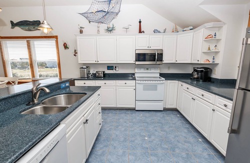 This home offers everything your family desires for summer fun including a landscaped yard with grass, private pool, and lots of space to spread out. You'll quickly see that this vacation home is a cut above the rest boasting ceramic tiled bathrooms, granite counters, whirlpool bath, modern well-equipped kitchen and oversized dining room table. Enjoy lazy afternoons sunning on one of 4 decks then enjoy your dinner outdoors on the screened in porch. Not only is this home located in a quiet court with a short walk to the beach, tennis, basketball, fitness center or sound side pond, BUT it's also right next to the county path that runs along Route 12 all the way to the 4 wheel drive ramp leading to the wild horse area where the paved roads end. This year let “Castle in the Sand spoil your family with sunsets on the back deck and lighthouse views from the front yard.