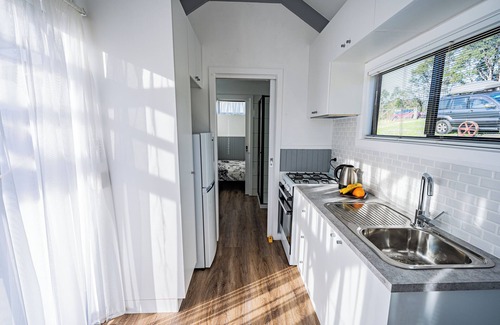 Majestic Angophoras right at your door, in full view of Mount Mumbulla, our cozy tiny home cabin is well equipped for the sole traveller or couple. On arrival, fresh fruit and chocolates awaits. Enjoy the vistas from your private deck/pergola and be greeted by our beautiful Angus cows and calves. We are a working farm and grow beautiful calves and gorgeous dorper lambs. We are growers of garlic and a small vege patch! Some pantry items are provided for your convenience (listing provided on guest welcome). Your tiny is air conditioned for your comfort both with cooling and gas heating. Your tiny is fully fenced 1.5 acres with direct road access. Private carpark. Our cabin includes a few extras to make your stay more comfortable and not so alien to the modern world. A smart TV monitor is wall mounted in your living area, for a rainy day - just plug in your device.