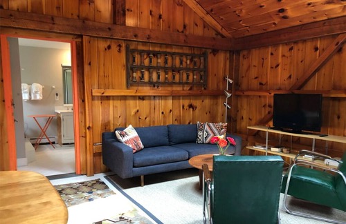 The great room is light and lovely and there is a kitchen equipped with everything you will need. If you bring a car there is parking just outside your door . There is a bike rental shop just down the street that will deliver to your door.