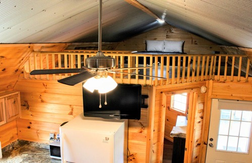 Southern Charm is a two bedroom tiny-home that's interior is made up of pine walls and corrugated steel ceiling, giving it a modern-industrial cozy feel. Don't let the word "tiny" fool you! This tiny home is big on space! when it comes to sleeping arrangements, the Lofted Cabin can easily (and comfortably) sleep 8 in the four queen beds (1 bed in each of the two rooms and 1 bed in each of the 2 lofts). Bringing your pet on the trip? not a problem! The Lofted Cabin is pet friendly.