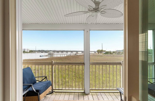 From the kitchen, family room, screened porch, or master bedroom and master bedroom deck, watch the fishing boats coming/going, the sail boats rocking, or paddle boarders as they navigate the beautiful Folly River and marsh wildlife. The home is a 3 bedroom (king, queen, & twin over twin and twin over full bunks) / 3 full bathroom townhouse which sleeps up to 8 comfortably. The home has hardwood floors throughout and is decorated in a cozy beach theme. You will enjoy the water views from the comfortable family room and open concept living, kitchen, and dining area. The kitchen is well appointed with everything you will need to cook or entertain (including a Keurig which we always wish we had when we visit VRBO rentals). Enjoy morning coffee and sunrise or evening on the screened in porch with dining set and seating for 6. We also provide a game basket, pack & play which can be used in lieu of a crib, etc.