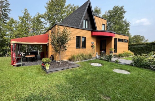Escape to our charming chalet located right on the water's edge in Pohénégamook. Perfect for families or groups of friends, this chalet offers a peaceful setting and easy access to numerous outdoor activities.