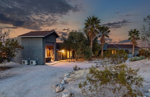 Climber's Paradise is a dream getaway combining luxury & comfort w/ unique amenities - the perfect place for large groups. Enjoy a rock-climbing wall, cool off in a cowboy tub style pool, & soak in the hot tub as you enjoy stunning landscapes. This idyllic Joshua Tree retreat offers stargazing & sweeping desert vistas of the national park.