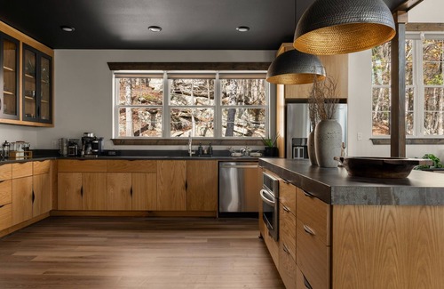 Mudita Vacation Spa, nestled near the stunning Buffalo River, offers a truly unique and luxurious spa retreat experience. Named after the Sanskrit word for unselfish joy in others' happiness, Mudita embodies comfort, relaxation, and rejuvenation. This modern, well-appointed luxurious home provides guests with full, private access to Mudita Spa, featuring a sensory deprivation float tank and a soothing heat sauna—perfect for complete relaxation. The outdoor hot tub is another highlight, overlooking a scenic ravine with a seasonal flowing creek that adds to the peaceful ambiance. With breathtaking views, the sounds of a near by water fall, the setting feels magical. Spread across 10 private acres, Mudita offers absolute privacy, surrounded by nature. The home’s multiple decks, each facing the creek, offer an ideal spot to enjoy breakfast to the tranquil sounds of rippling water during the wet seasons. Guests can take a leisurely hike around the property, discovering the natural wonders that await. Mudita Vacation Spa elevates the retreat experience with an impressive outdoor kitchen, complete with a large screen TV, comfortable sitting and dining areas, a Pit Boss pellet grill, and a fire pit surrounded by sectional seating. This setup is perfect for outdoor relaxation, socializing, and enjoying meals in nature. Inside, the home greets guests with a beautifully open and modern living and dining area, designed with luxury and comfort in mind. A grand staircase leads to two spacious and stylish upstairs bedrooms. The bathroom on this level offers a true spa experience, featuring a shower room and a deep soaking tub, ideal for unwinding after a day outdoors. The second floor also boasts a convenient coffee bar, so guests can enjoy their morning brew steps from their bedroom. For those who love to cook, Mudita’s kitchen is a dream come true. Equipped with high-end amenities, it has everything needed to prepare gourmet meals and share memorable dining experiences. Mudita Vacation Spa has been designed to offer unmatched luxury, privacy, and relaxation at every turn, making it an unforgettable destination.