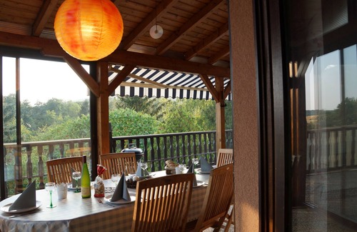 From the terrace you overlook the nature. You will keep in memory the splendid view that awaits you, sweeping the plain of Alsace, from Northern Vosges to the Black Forest, located 60 kilometers away. Sunrises and sunsets guaranteed sun. The interior combines modern and traditional. The layout is complete; a table tennis room, billiards and table football is available in the basement. The apartment will fill as much a family as a group of 8 people, up to 10 with two camp beds. Everyone will find his space while allowing good time together. The warm and natural wood material that is omnipresent throughout the apartment, you will feel immediately in a friendly and familiar environment.