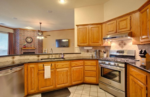 During your stay, you can spread out and relax on a new sofa and loveseat and enjoy a 55 inch, 4K flat screen TV with access to Netflix, wiifi and Internet TV. The kitchen nook has a 4-seat table and the formal dining features a beautiful farmhouse table that can seat 8 people comfortably. The master suite offers a comfortable queen-sized bed with a pillow top mattress, microfiber sheets and a flat screen TV. The master bathroom includes double sinks, a separate tub and shower and a big walk-in closet. Two guest bedrooms feature a queen-sized bed and the third has a fun, twin-over-full sized bunk bed that can comfortably sleep 3 guests. The second living room is stocked with board games, a large sleeper sofa, and a couple of chairs that create an area away from the TV for some fun, quality family time! Enjoy the mature trees and quiet fenced in backyard with outdoor seating and gas grill with propane provided.