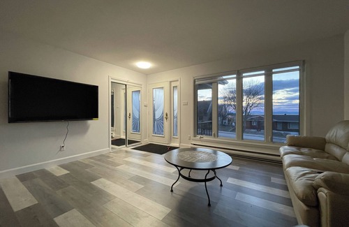 Magnifique appartement centrique situé à l'étage d'un triplex tranquille (à moins d'un kilomètre de l'hôpital, des écoles, du centre commercial et des épiceries, notamment). Comprend tous les électroménagers (frigo, four, lave-vaisselle, laveuse-sécheuse), thermopompe pour être au frais en été et à la chaleur en hiver, patio, BBQ, wifi, Netflix, et même la vue sur le fleuve!