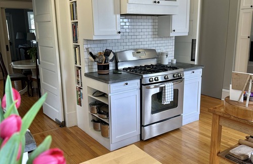 In 2012 my father and I purchased the downstairs unit and spent 18 months renovating it to showcase its historic charm. We installed high efficiency AC/heat units and raised the ceilings back to their original heights. We discovered a fireplace that had been covered and removed a wall that had been added in 1985 to create an unnecessary hallway, creating more space for the kitchen — oh, and the original wood stove was found in the wall behind where the range now sits). With the help of my brother (who is a real-life MacGuyver who can build or fix anything), we attended to the tiniest details -- like the original window pulls and the door hardware that still works with the skeleton keys. We are happy to be able to share this love, light, and laughter filled home with guests.