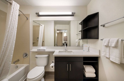 This extended-stay property is designed to provide comfort and convenience during all guests' visits. Our spacious suites feature fully-equipped kitchens, separate living and sleeping areas, and complimentary high-speed Wi-Fi, ensuring a productive and enjoyable stay. Keep up with your workout routine in our on-site fitness center, and take advantage of our guest laundry facilities. Our 24-hour market offers a selection of snacks, beverages, and essentials for your convenience.