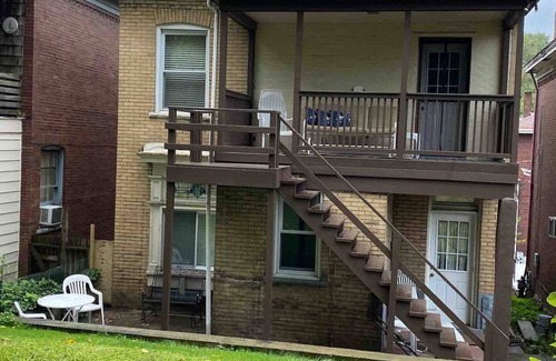This apartment is located in a lovely neighborhood, in a historic 1910 brick home which has been converted into two lovely apartments. It's close to a major road, with convenient public transportation to locations both east (Monroeville) and west (Oakland, Shadyside, CMU, Pitt). The unit is fully furnished with large and small appliances, washer and dryer, linens, china, cooking utensils.