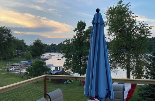 Discover lake house living in this grand 4-bedroom, 3 bath lake house on Shriner Lake in Columbia City Indiana. The home offers spectacular views from almost every room. The three decks provide a tranquil area to relax and absorb the lake activities lying in front of the 92-foot-wide lakeside setting. This lovely house features 3 king beds and 3 queen over queen bunk beds, perfect for a group getaway. Enjoy the convenience of amenities like AC, heating, WIFI, a recreation room, multiple exterior decks, 2 washer/dryers, and lake toys. We hope you enjoy what our place and Columbia City has to offer.