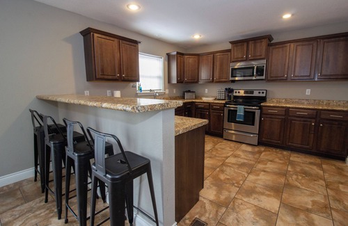 Stay just minutes from Fort Leonard Wood’s front gate in this spacious 4-bedroom, 3-bathroom home. Perfect for families or groups, it features a fully equipped kitchen, a comfortable living area, and a private master suite.