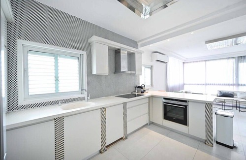 Welcome to our spacious penthouse apartment on Harav Kook Street in the vibrant Yemenite Quarter. Step into a luxurious 150 sq.m apartment that offers modern comfort and style. The living area is filled with natural light and offers a cozy seating area. The fully equipped kitchen is perfect for preparing meals during your stay. The penthouse features four stylish bedrooms, accommodating up to eight guests. The master bedroom offers a comfortable king-size bed, while the other bedrooms provide ample space and cozy beds. Step outside onto the expansive 80 sq.m balcony and enjoy the stunning views of the surrounding area. The balcony is the perfect spot to relax, dine, or simply soak up the vibrant atmosphere of Tel Aviv.