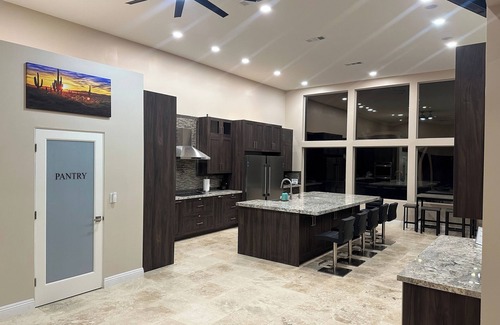 PROPERTY- Guests enjoy full, private access to the entire property. The property is 2.5 acres of AZ desert with lots of cacti (saguaros, ocotillos), trees, flowers, and animals such as quail, morning doves, hummingbirds, Arizona prairie dogs, bunnies, jack rabbits, roadrunners, coyotes, javelinas and even a rare bobcat. The back yard has a swimming pool, spa, firepit, seating and dining areas, and outdoor kitchen/complete with a gas grill, side burner, sink, mini-fridge, ice maker and rotating TV. The back yard is fenced in, but please watch small children if outside on the rest of the property.