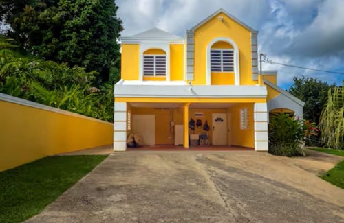 Nestled in hills of Naguabo, this delightful house offers 5 bedrooms with a mix of 1 king, 3 queen, and 1 full bed. Guests can enjoy amenities like solar energy, solar hot water, WiFi, a washing/dryer machine, AC, and more. With 3 bathrooms equipped with hair dryers and showers, there's plenty of space for everyone. Relax in the cozy living room with a futon for additional sleeping arrangements. 15-person saltwater spa, lots of outdoor seating and yard games. BBQ on the back patio. Your stay at this amazing property will be unforgettable. We'll be available to answer any questions while you stay at our place.
