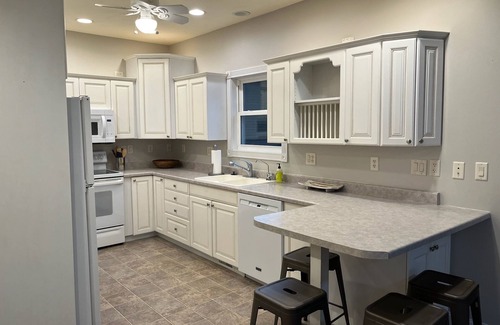 Escape to this beautiful 5-bedroom house down the street from Dordt, conveniently located in Sioux Center. With 1 king bed, 2 queen beds, and 3 twin beds, up to 9 guests will have plenty of space to relax. Enjoy the convenience of amenities like a fully stocked kitchen, WiFi, full laundry with brand new washer and dryer, a large backyard, and AC. We can't wait to host you at our inviting and comfortable retreat.