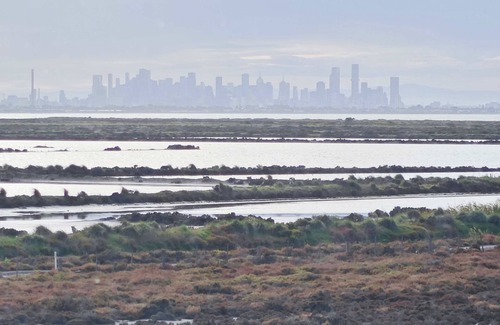 Upstairs balcony offers spectacular city views at sunset