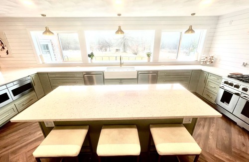 - Huge peninsula and kitchen island with stools, making it the perfect place to gather