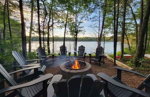Outdoor Amenities: Grill, Wrap around deck (Pergola with Outdoor Dining Area coming soon!), Large Fire pit area near the lake with comfortable Adirondack chairs, Dock, Kayaks (2), Paddle boards (2), Canoe, Life jackets (variety of sizes), and Hammocks (4).