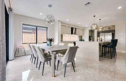 Indulge in the spacious comfort of Mambourin, a newly established urban city located south-west of Melbourne's Central Business District. Our spacious house boasts 6 bedrooms, 8 beds, and a cozy sofa bed, accommodating up to 15 guests comfortably. Ideal for large groups or families, our home offers ample space for relaxation and enjoyment. Located in a tranquil neighborhood, yet conveniently close to local attractions, it's the perfect retreat for your next getaway.