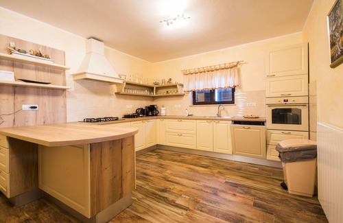 The whole house is air conditioned. On the bottom floor you will find an old Istrian kitchen with an inside open fireplace, and a game room with a pool table. There is also an additional bedroom.