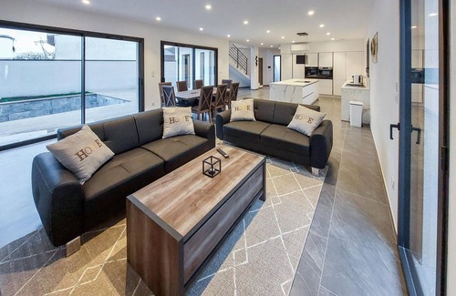 Spacious and modern architect-designed house with pool and large terrace in the Lyon region.