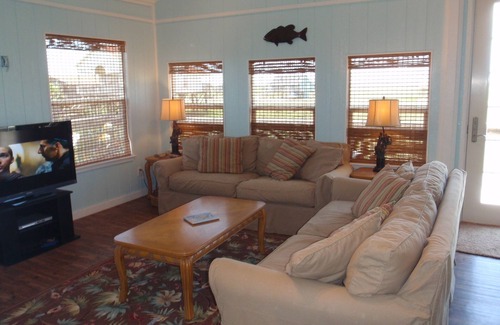San Luis Pass is renowned for fishing, boating, shelling and gorgeous beaches. The Family House features a large side and front deck with views of the Gulf and the Bay. The house is currently finishing a complete remodel and ready for rental bookings. The house is beach style, with lots of large windows, and is a short walk to a beautiful, long Texas beach. The house is a 3 bedroom, two bath, and a large 2 queen bed loft. Fully furnished and nicely appointed first floor with a pull out couch, 46' LCD SatTV, DVD, open kitchen, granite counters, nice new appliances, and large washer and dryer. Three full bathrooms, your own bath in the master. Newly remodeled in 2010, and ready to rent as of June 5th. Features Three bedrooms, two queen size beds, one full, two queens in the loft with your own SatTv, and fold out couch. Shelling on along our Texas shores. We have Kayaking, Deep Sea Fishing, Bay Fishing. Galveston has Schlitterbahn, Moody Gardens, great restaurants, and the Strand.